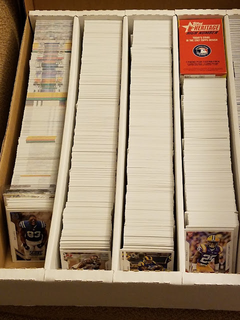 2015 Score - A huge box full. One whole row of inserts and parallel inserts / Scorecards / SPs, and three rows of base. Only primarily missing Tom Brady and the Ravens. The last row and a half are all rookies with mulitple copies of most of them. This is by far the largest quantity of any set I have. (Unless you want 1990 Pro Set football, but this is still more).